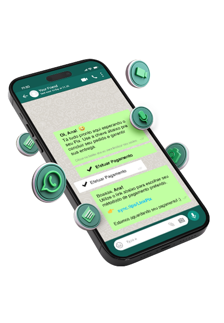 Desde a confirmação de pagamento até a entrega final, a SyncZap mantém seu cliente informado.Você configura os gatilhos, e a plataforma envia as mensagens certas no momento exato.